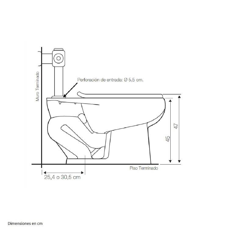 Descarga de 4,8 lts con fluxómetro superior.